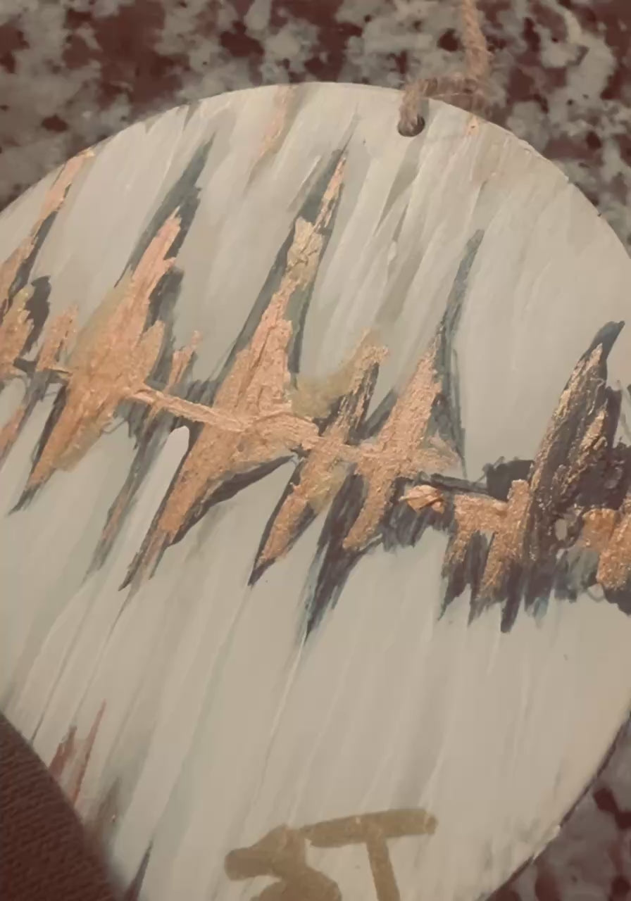 A custom, hand-painted ultrasound, heartbeat, or soundwave ornament created just for you. Each 4-inch wooden keepsake is a meaningful way to celebrate or remember a special moment.